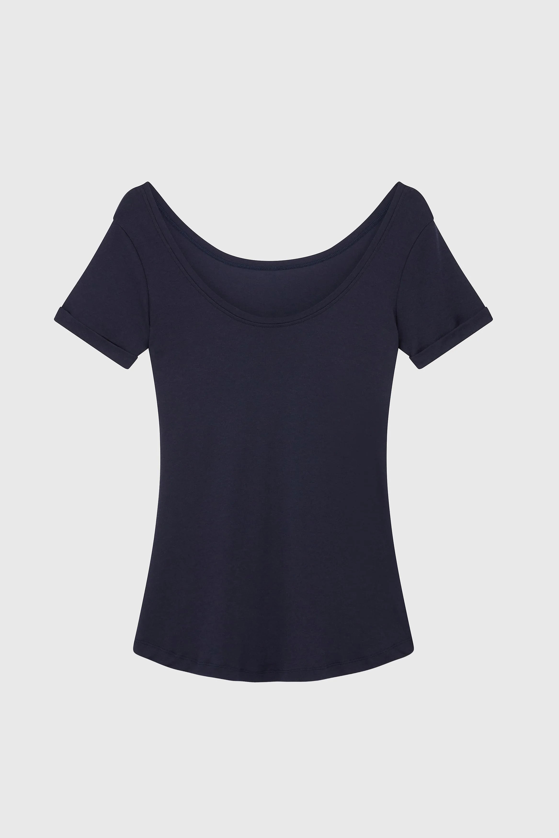Women's Boat Neck Cotton Modal Blend Short Sleeved T-Shirt in Navy by Lavender Hill Clothing