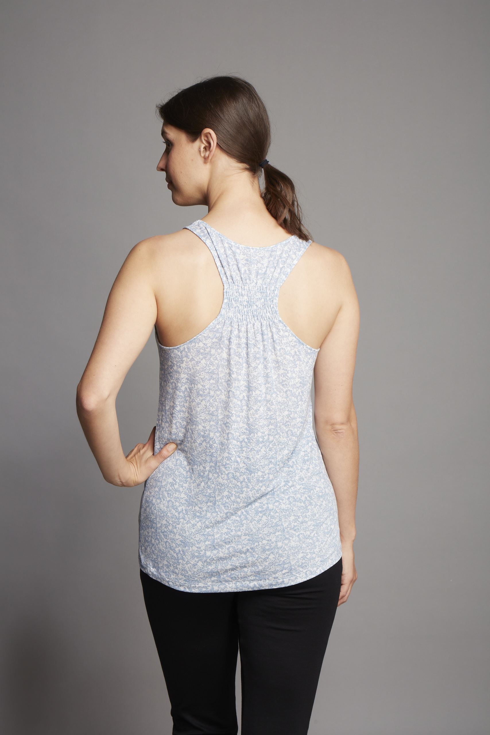 A flattering tank top with an elegant elasticated back is perfect to the gym or at home.