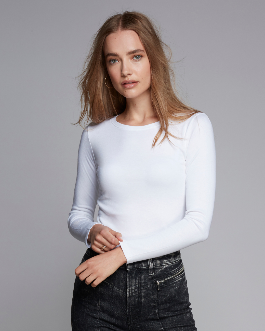 Buy 2+, Save 10%Quality womens tshirts made by lavender hill - the perfect white t-shirtQuality Women's White Long Sleeve Crew Neck Cotton Modal Blend t-shirt in White by Lavender Hill Clothing