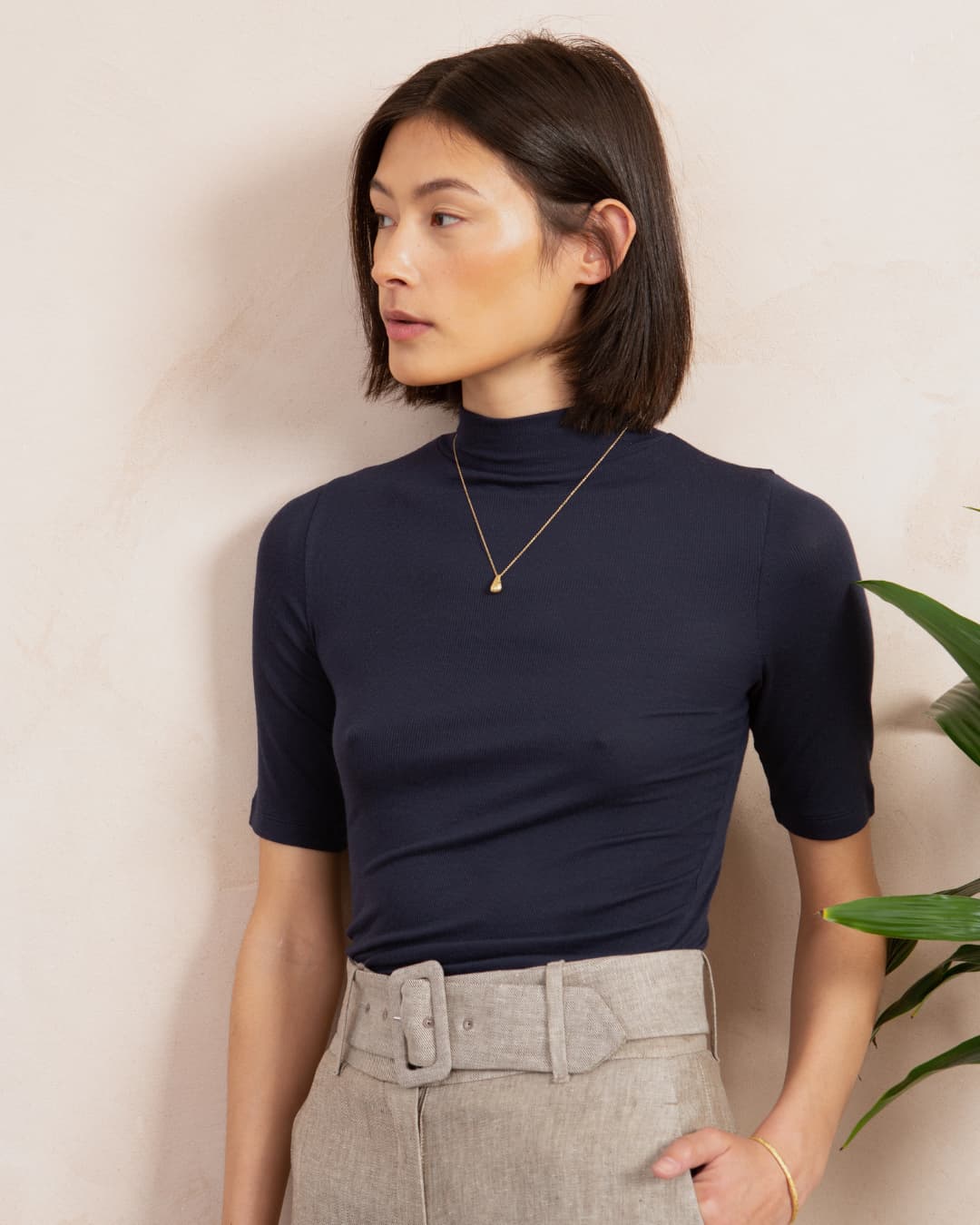Buy 2+, Save 10%High Quality Half Sleeve Crew Neck T-Shirt - Comfortable Crew Neck Cotton Modal Blend - Luxury Half Sleeve T-Shirt - Navy Half Sleeve Crew Neck T-ShirtHalf Sleeve Crew Neck Cotton Modal Blend T-shirt Women's Half Sleeve T-shirt Lavender Hill