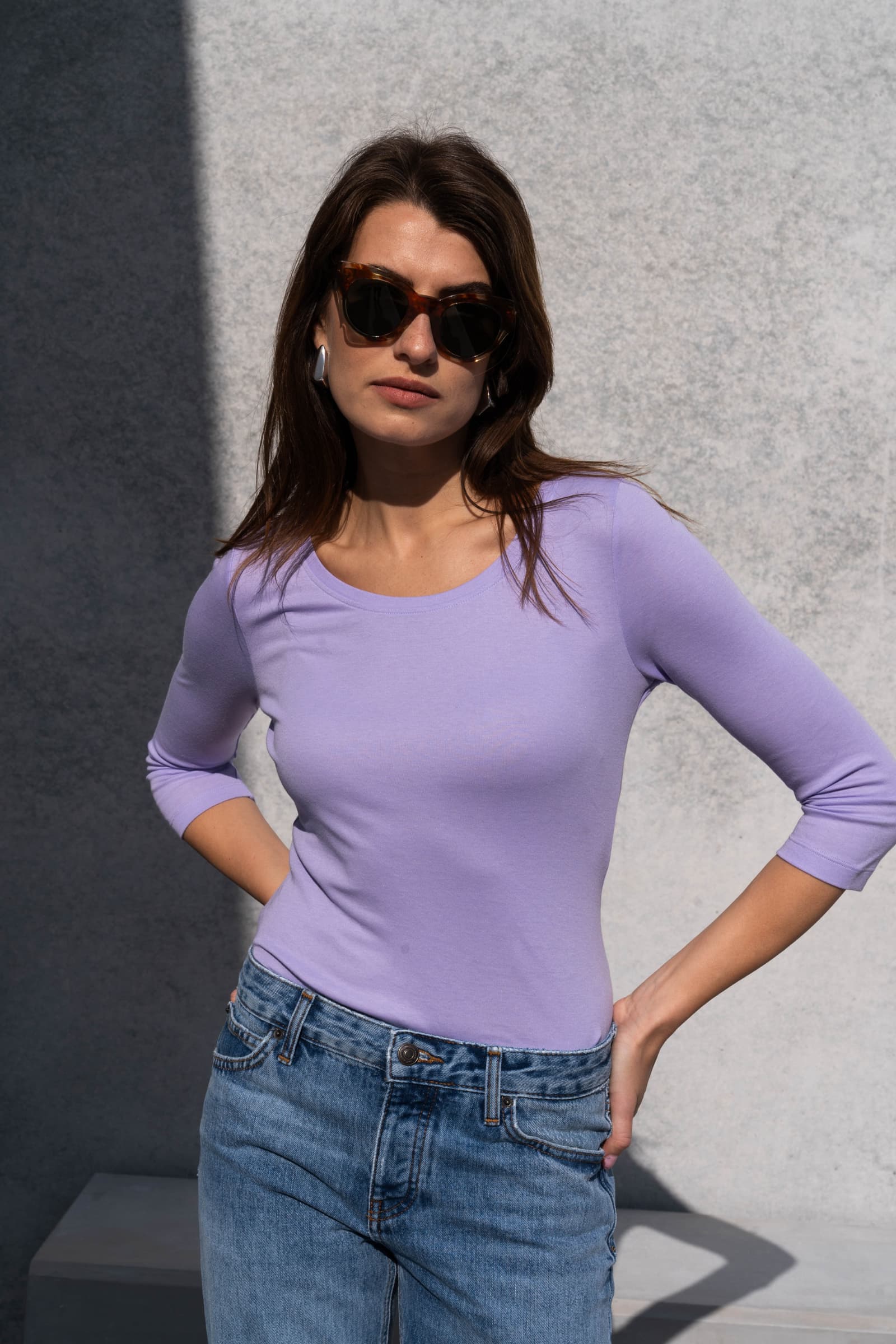 Upgrade your everyday wardrobe with this timeless 3/4 Sleeve Scoop Neck T-Shirt. Add it to your basket today for an effortless combination of style, comfort, and sustainability.