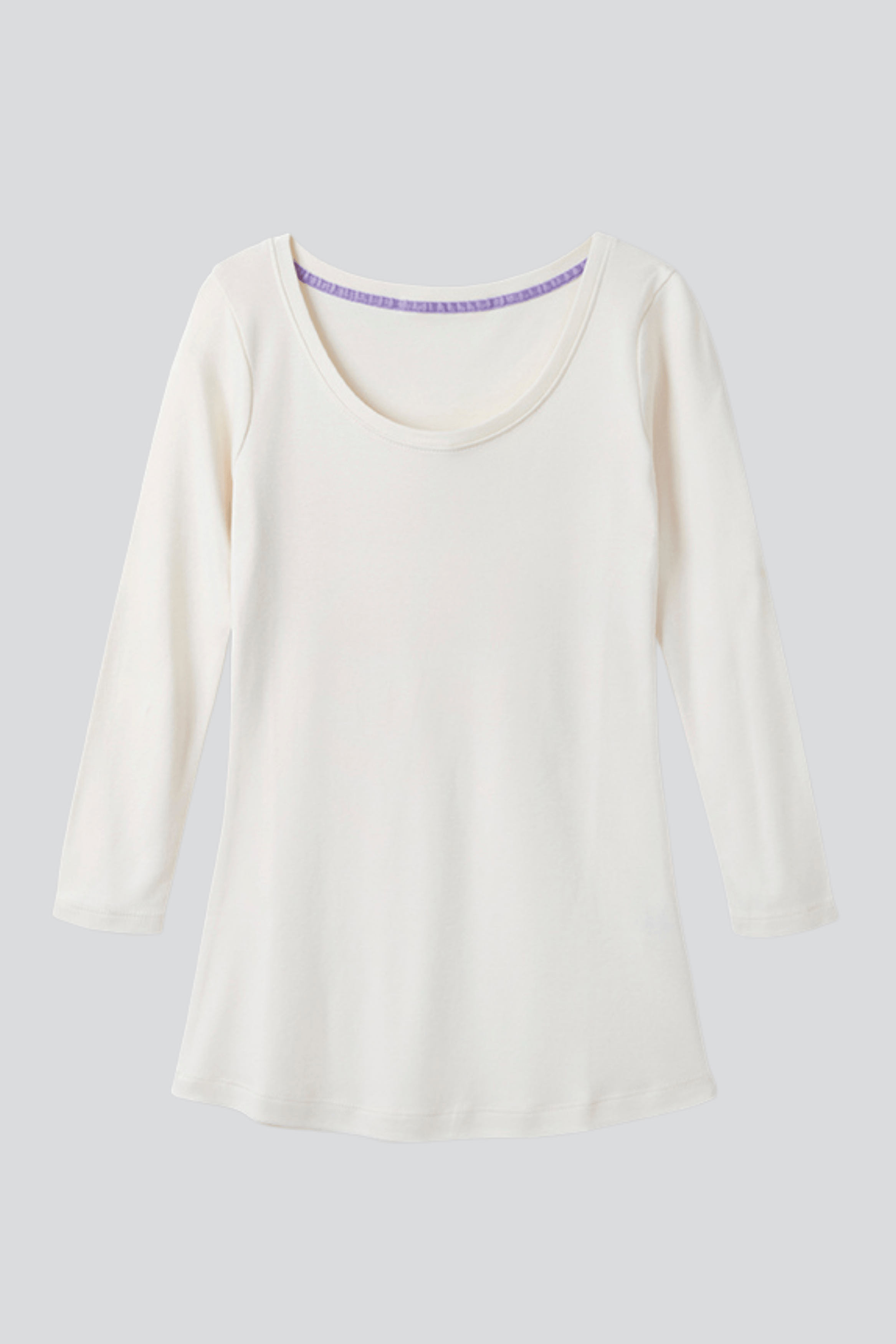快適さとスタイルを完璧に融合させた7/4スリーブのスクープネックTシャツで、毎日の必需品をワンランクアップさせましょう。上質なコットンモダール素材を使用したこの定番アイテムは、一日中、見た目も気分も最高に保てます。スクープネックがエレガントな雰囲気を添え、どんな体型にも美しくフィットします。