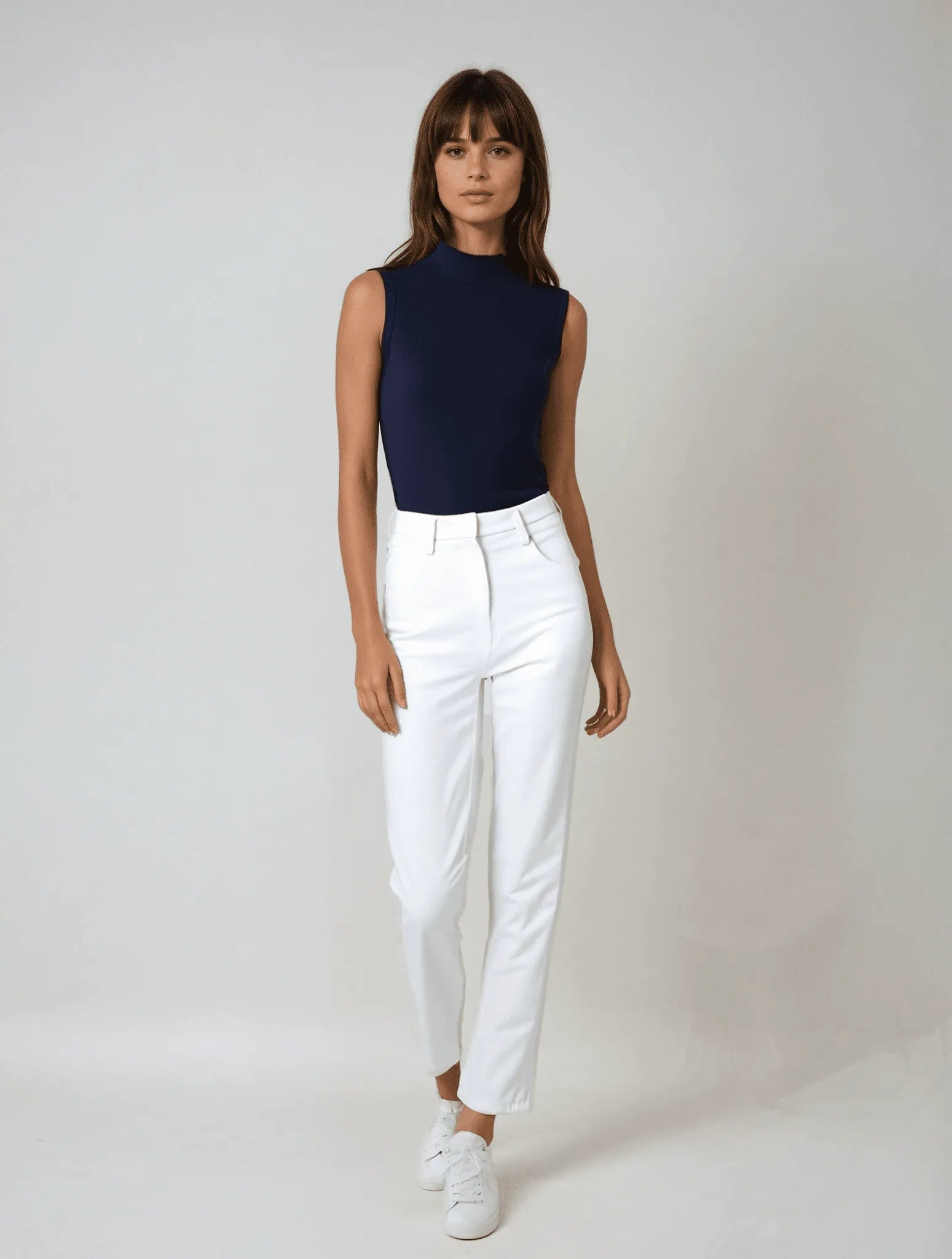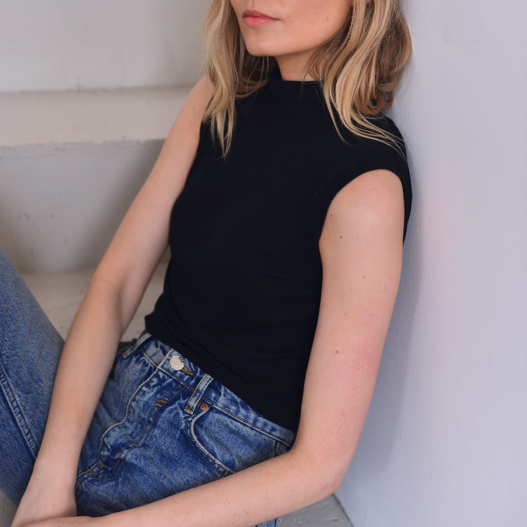 Upgrade your basics with the Sleeveless Mock Neck Micro Modal Top, a versatile and sustainable piece that combines comfort with timeless elegance. Add it to your basket today!